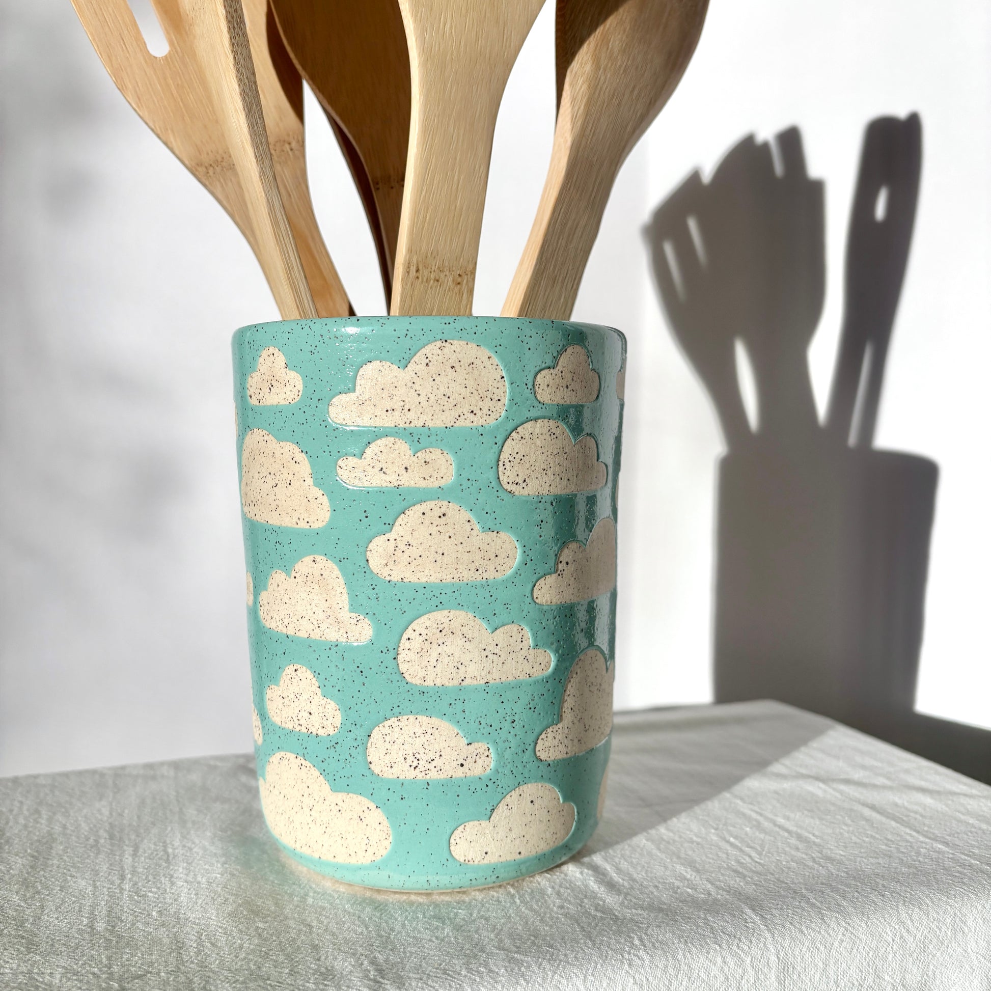 Handmade, stoneware vase/utensil holder. Dishwasher & Microwave SAFE!